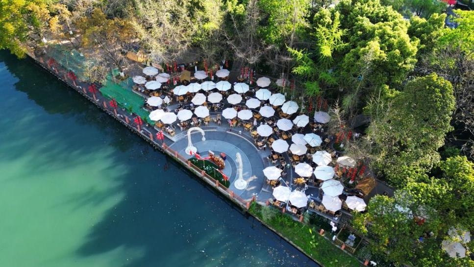 在露天茶座品茶、会友或独处,惬意消磨时光。这里的古风建筑群还是汉服打卡胜地,能拍出绝美古风大片。