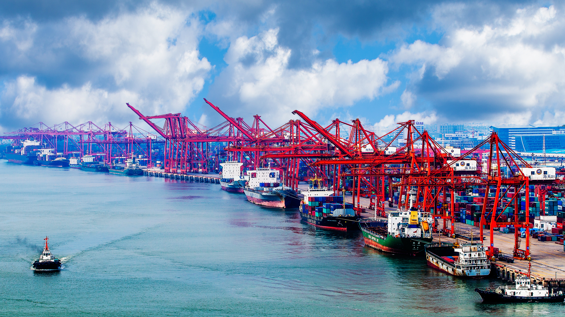 碧海蓝天间,厦门港东渡港区“丝路海运始发港”几个大字格外醒目。